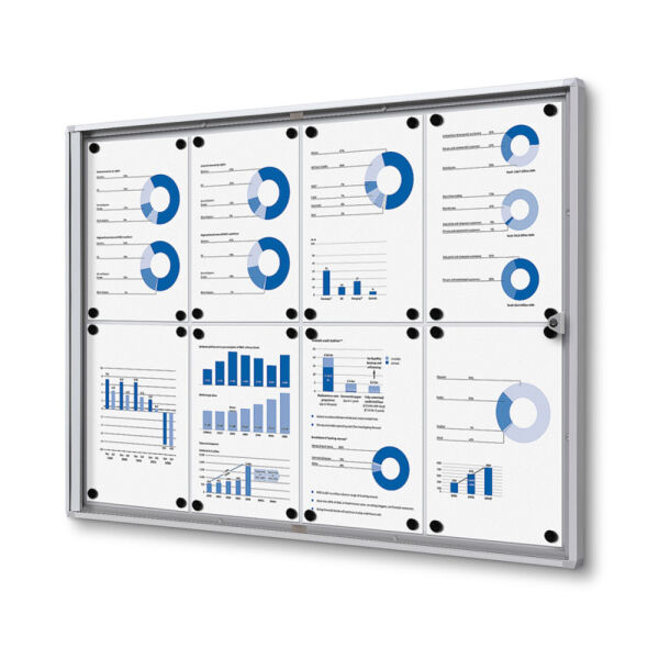 Presenteer jouw menu en prijzen op het Vergrendelbaar Notitiebord Economy. Een hoogwaardig stalen achterpaneel, geschikt voor markeerstiften en magneten. Een vergrendelbare draaideur met 2 sleutels. Verkrijgbaar in een breed scala aan maten, geschikt voor wandmontage en met de optie voor brandwerendheid. Voorzien van rechte hoeken en geschikt voor binnengebruik. Perfect te gebruiken op scholen, kantoren, in restaurants of openbare ruimtes.