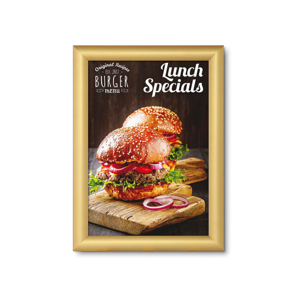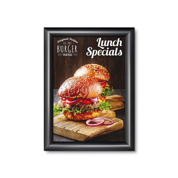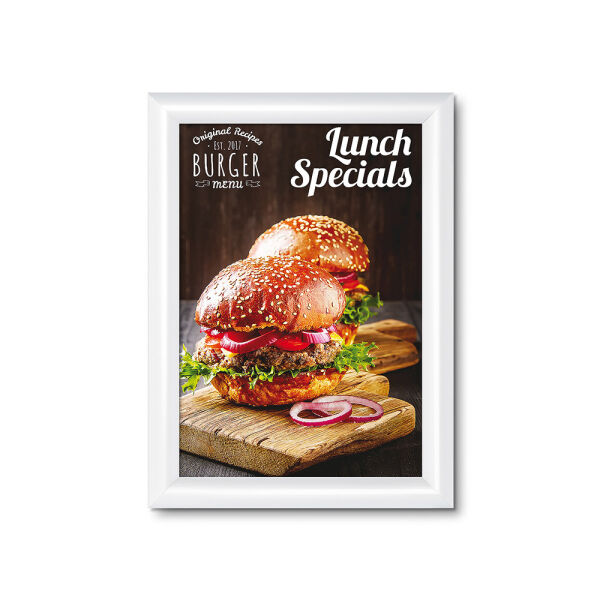 Zorg ervoor dat jouw reclameposter goed zichtbaar is met de elegante en duurzame 25 mm Kliklijst Standaard. De bestverkochte profielbreedte van 25 mm, een perfecte oplossing voor posterformaten van A5 t/m A0. Dankzij de kliklijst constructie kun je jouw poster eenvoudig wisselen zonder de lijst van de muur te halen. Kies tussen rechte of ronde hoeken. Perfect om informatie te verstrekken of te adverteren in de horeca, winkels en openbare ruimtes of als wanddecoratie in home décor.